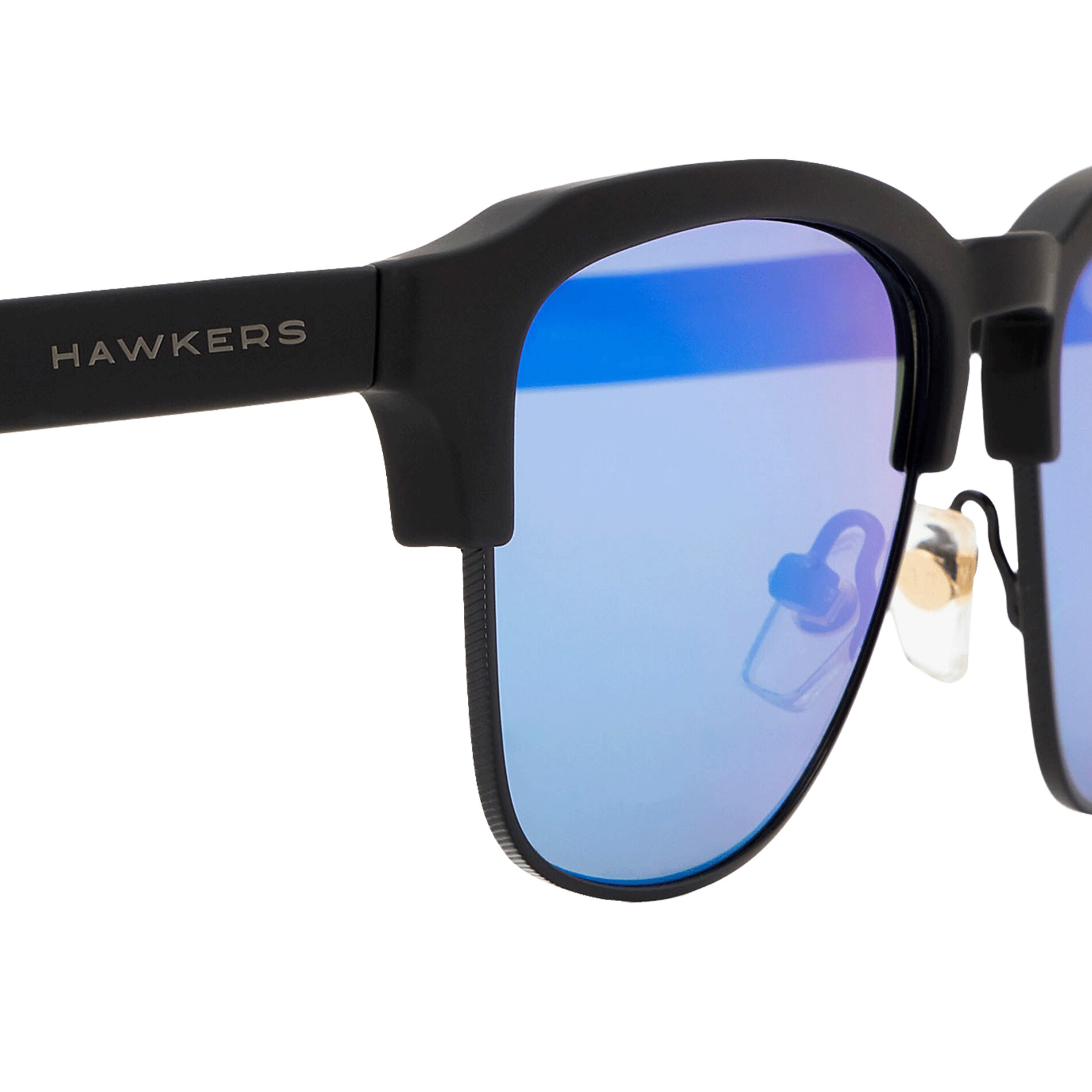 • Anti-slip, anti-allergy silicon nose pads, fixed with an exclusive Hawkers emblem in stainless steel. Nose pads designed with distinctive geometric lines