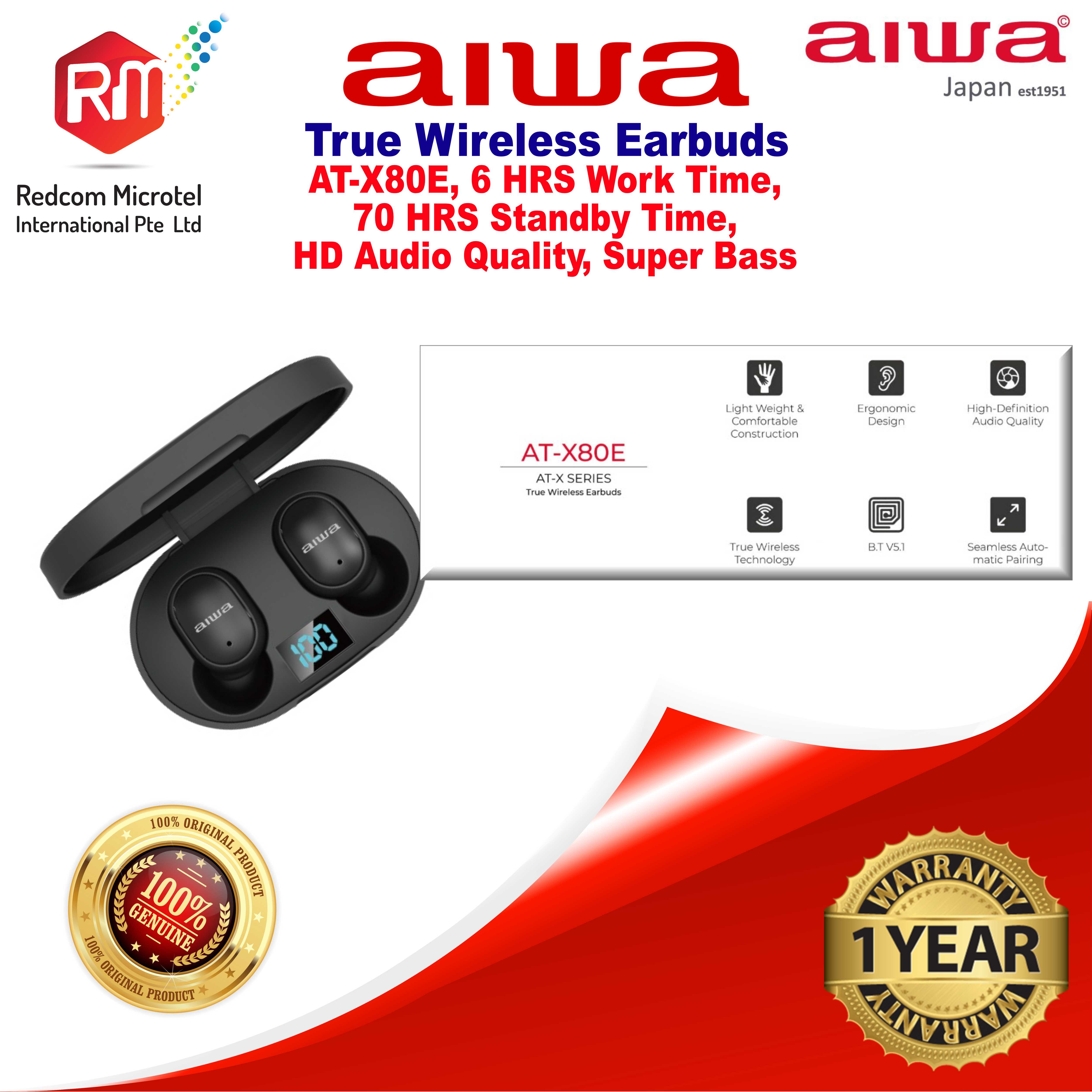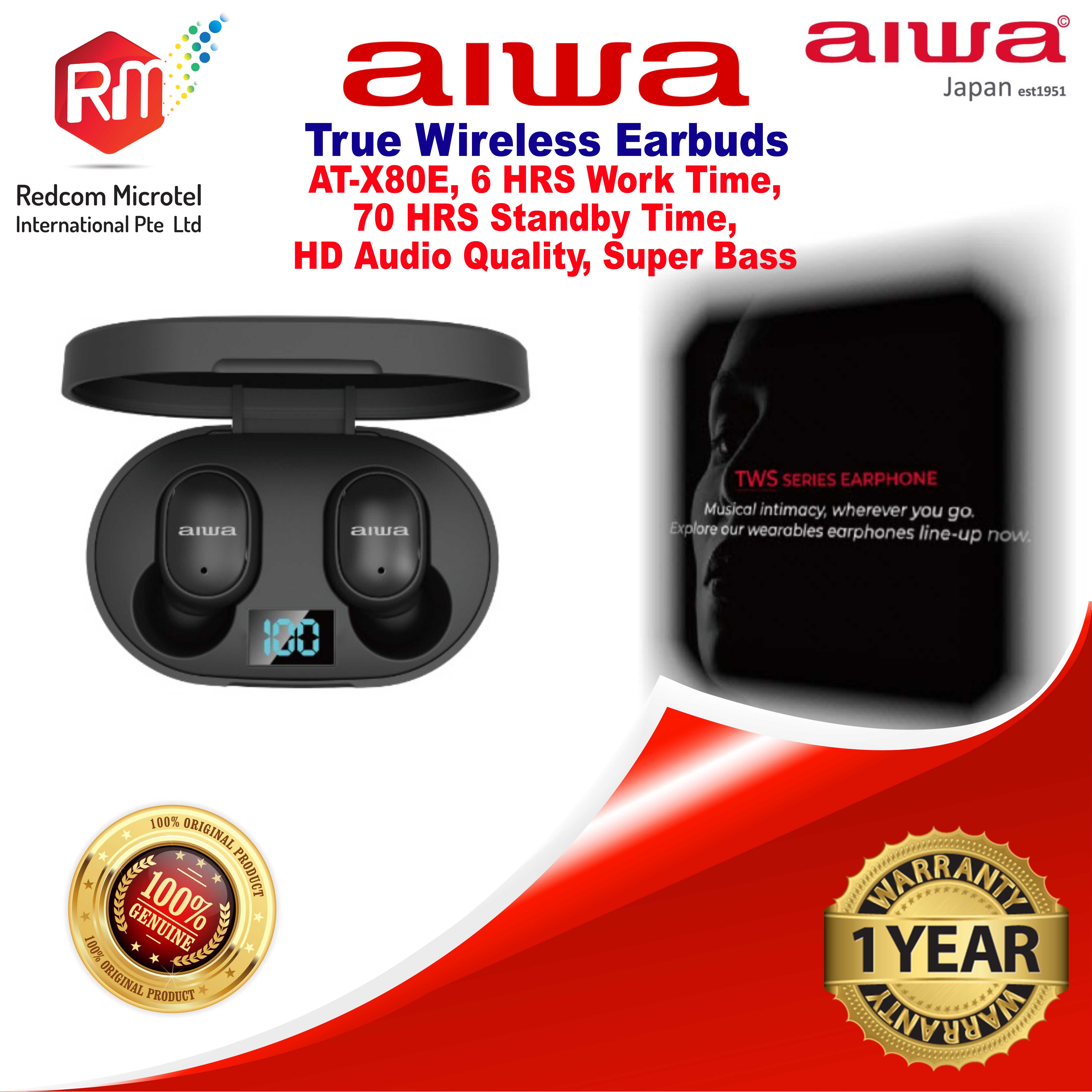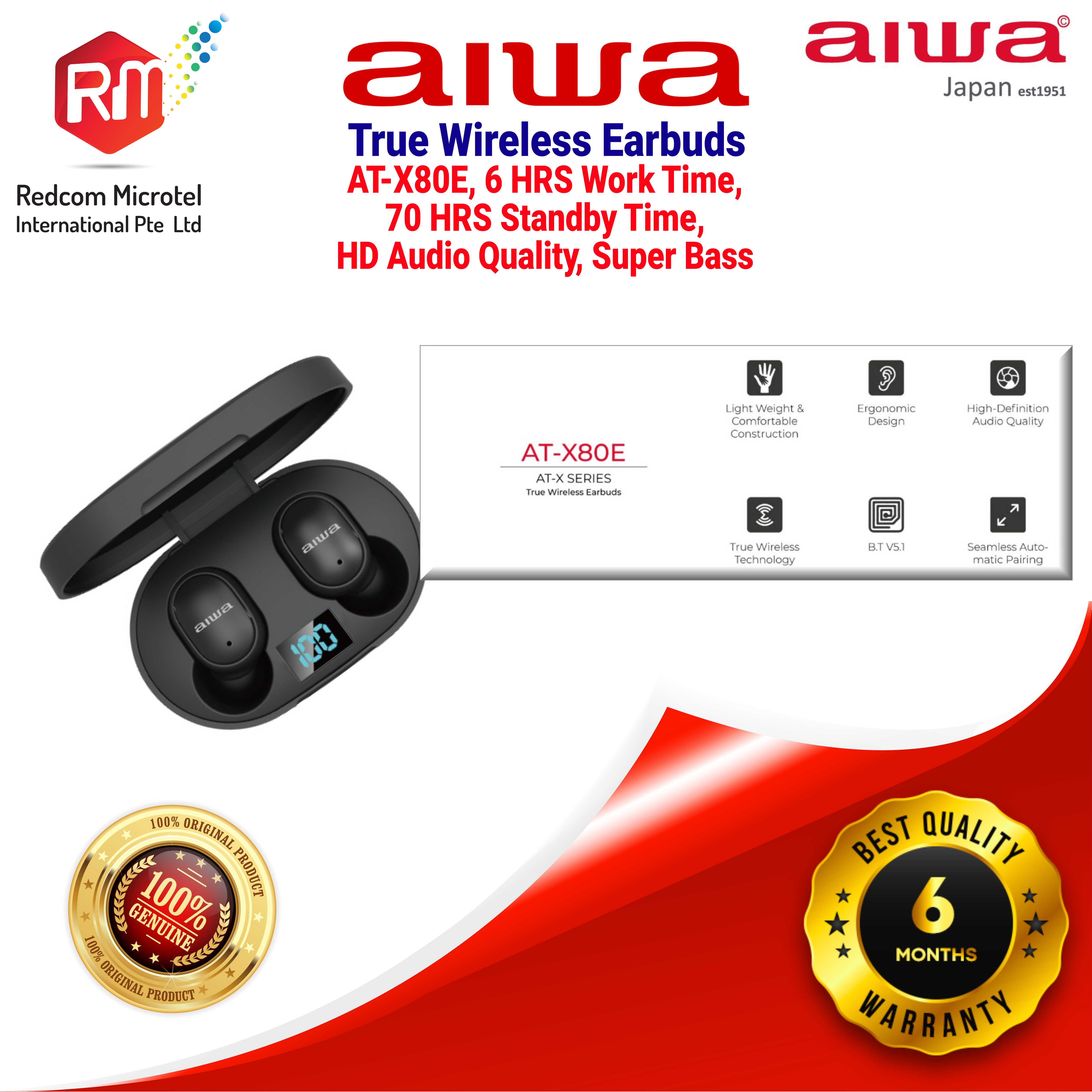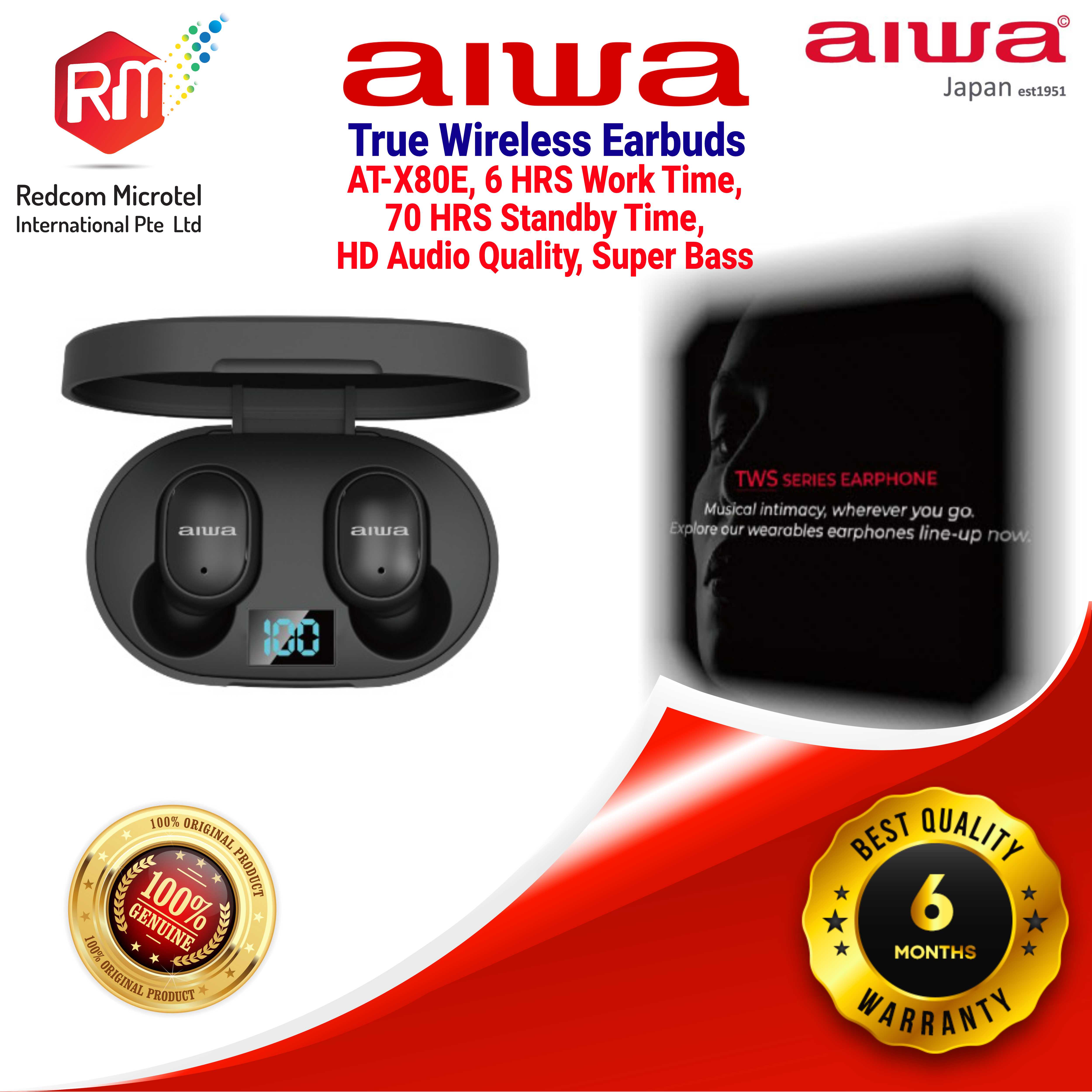 Aiwa True Wireless Earbuds AT-X80E (BLACK), HD Quality Super Bass, 6H Working Time, 70H Standby Time, 10 Mtrs Transmission Range