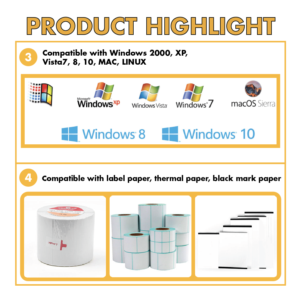 COMBO Thermal Printer HPRT N41 Label / Barcode Printer with Bluetooth & USB + 1000pcs A6 Paper
