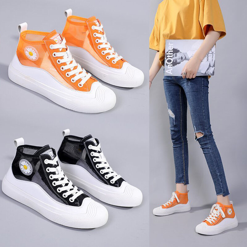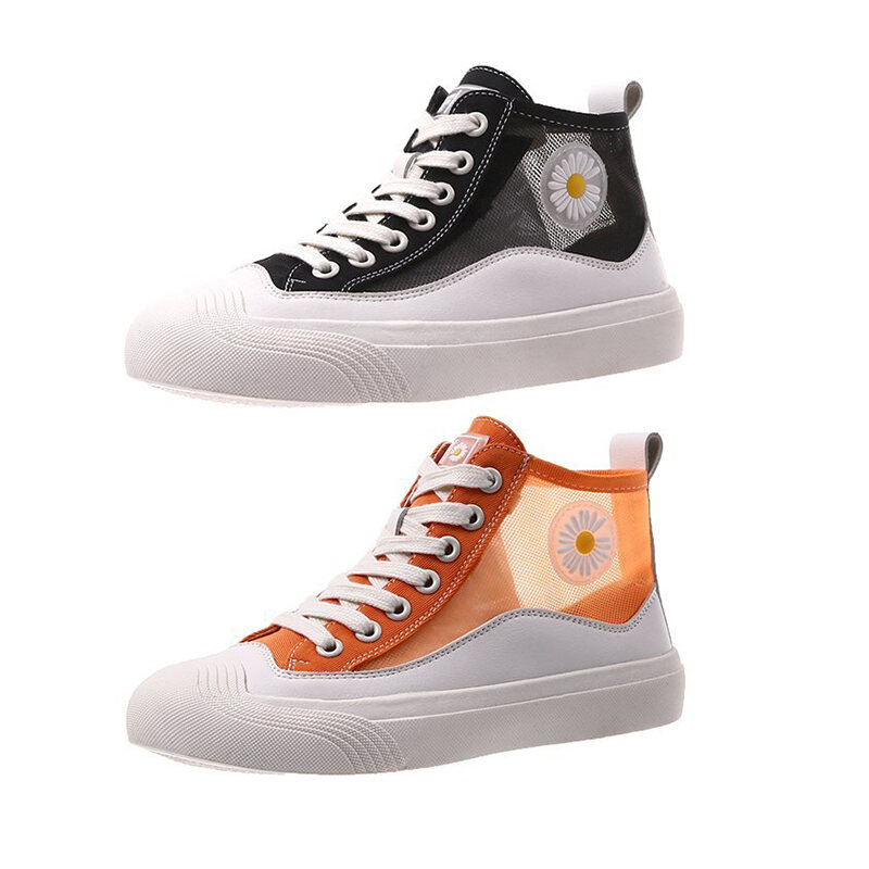 Hong Kong Popular Brand Fashion Daisy Hight-top Canvas White Shoes Female Korean-style New Style Breathable Mesh Sports Casual Board Shoes