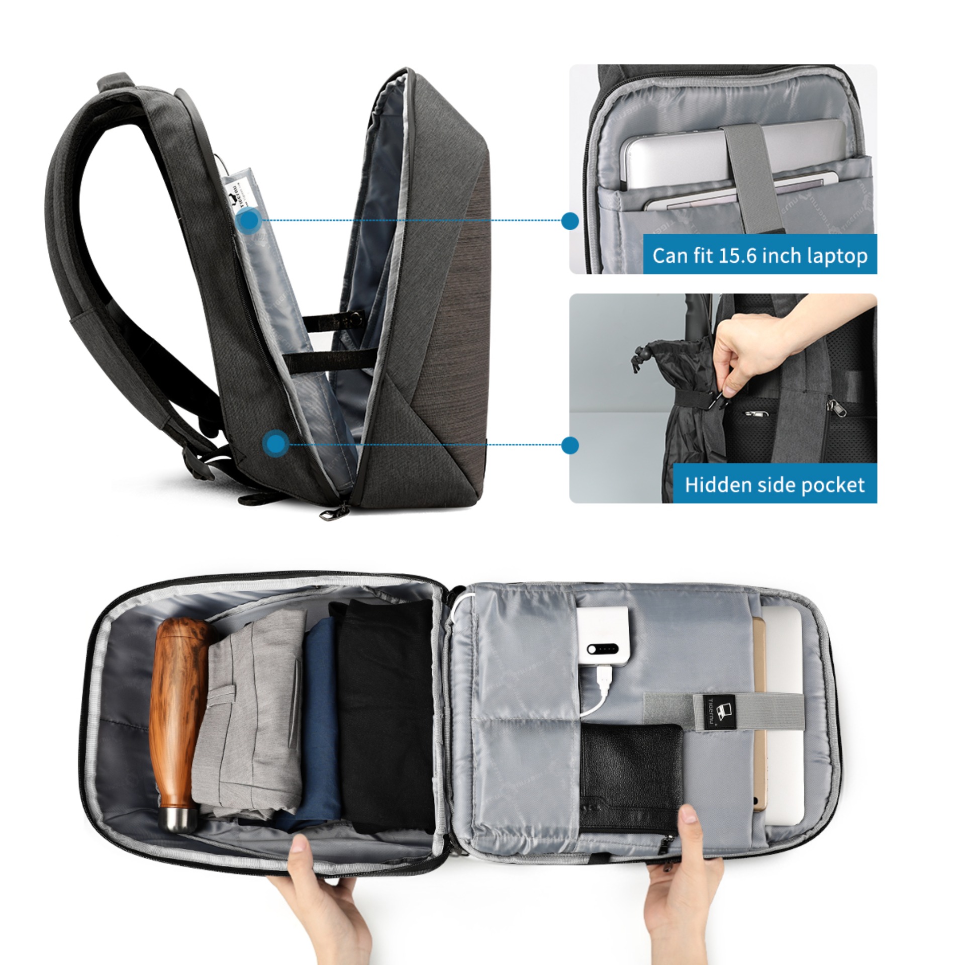 Tigernu anti theft backpack New Design Anti-theft Waterproof Laptop Backpack Fanshion Men Bags USB Charging Port Business Backpack for Men - intl
