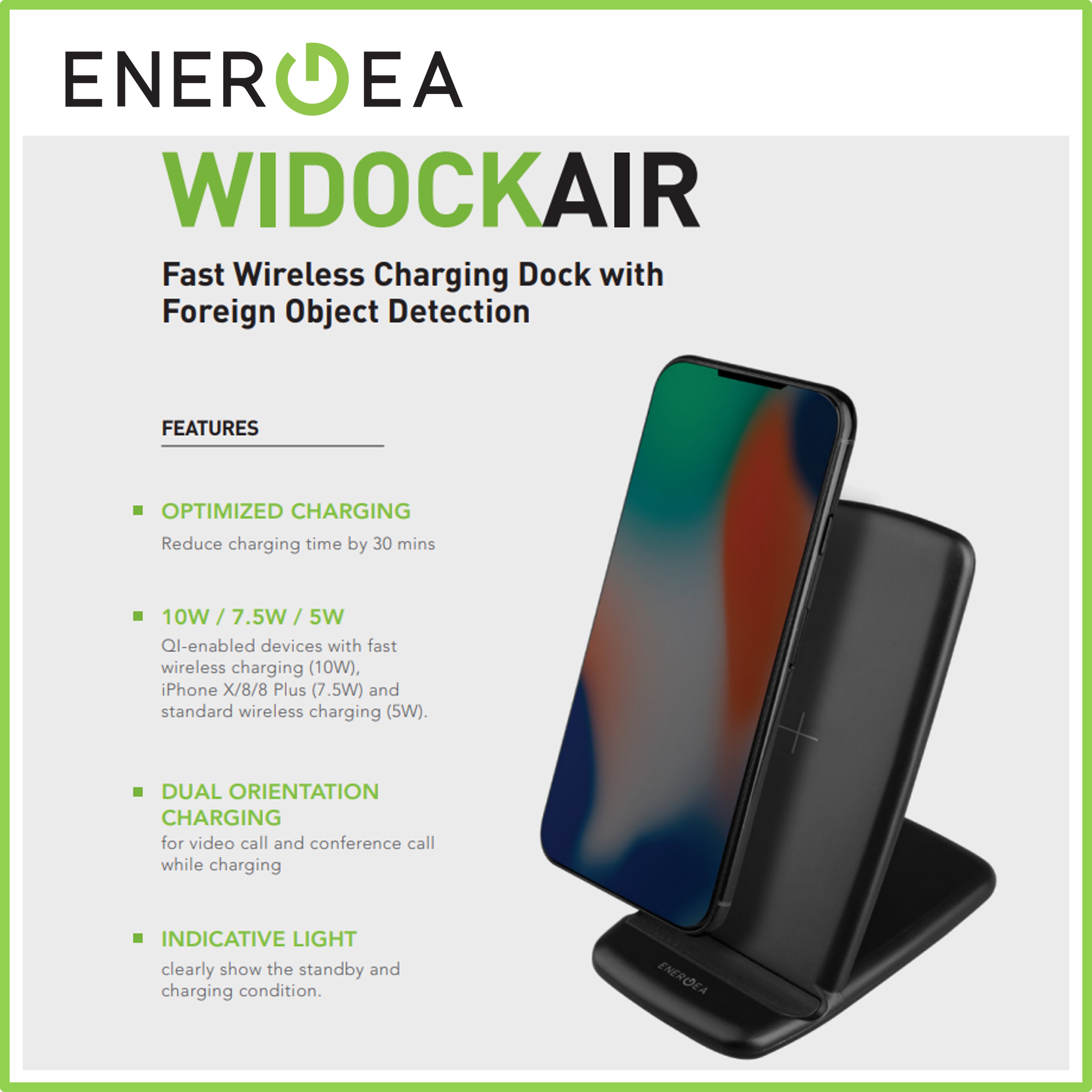 Energea Widock Air 2-Coils Fast Wireless Charger Charging Stand 5w/7.5w/10w Black