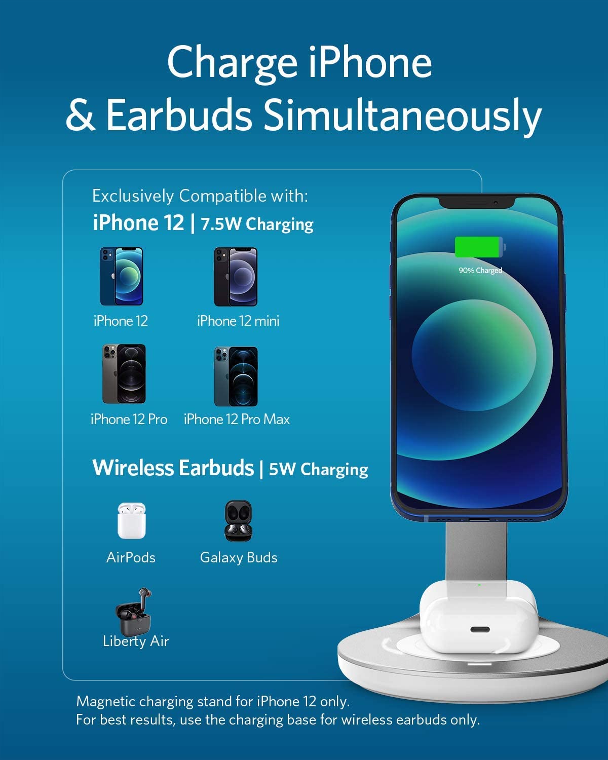 - Provides 7.5W max charging for the iPhone 12 series.