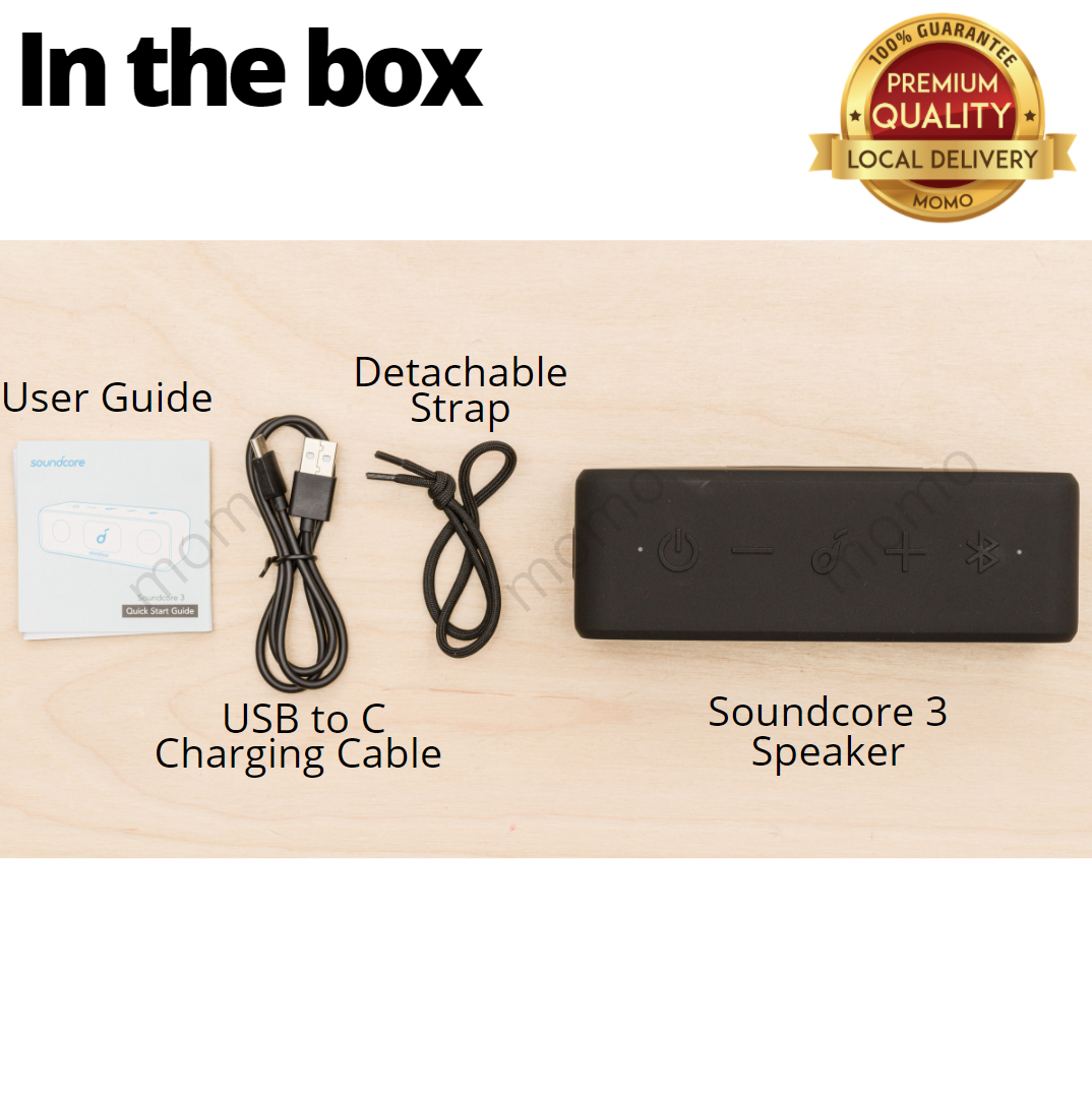 Anker Soundcore 3 Bluetooth Speaker Titanium Driver Dual Passive Radiator BassUp Technology App Compatible Equalizer Settings USB-C Connection IPX7 Waterproof 24 Hours Continuous Playback PartyCast Fu