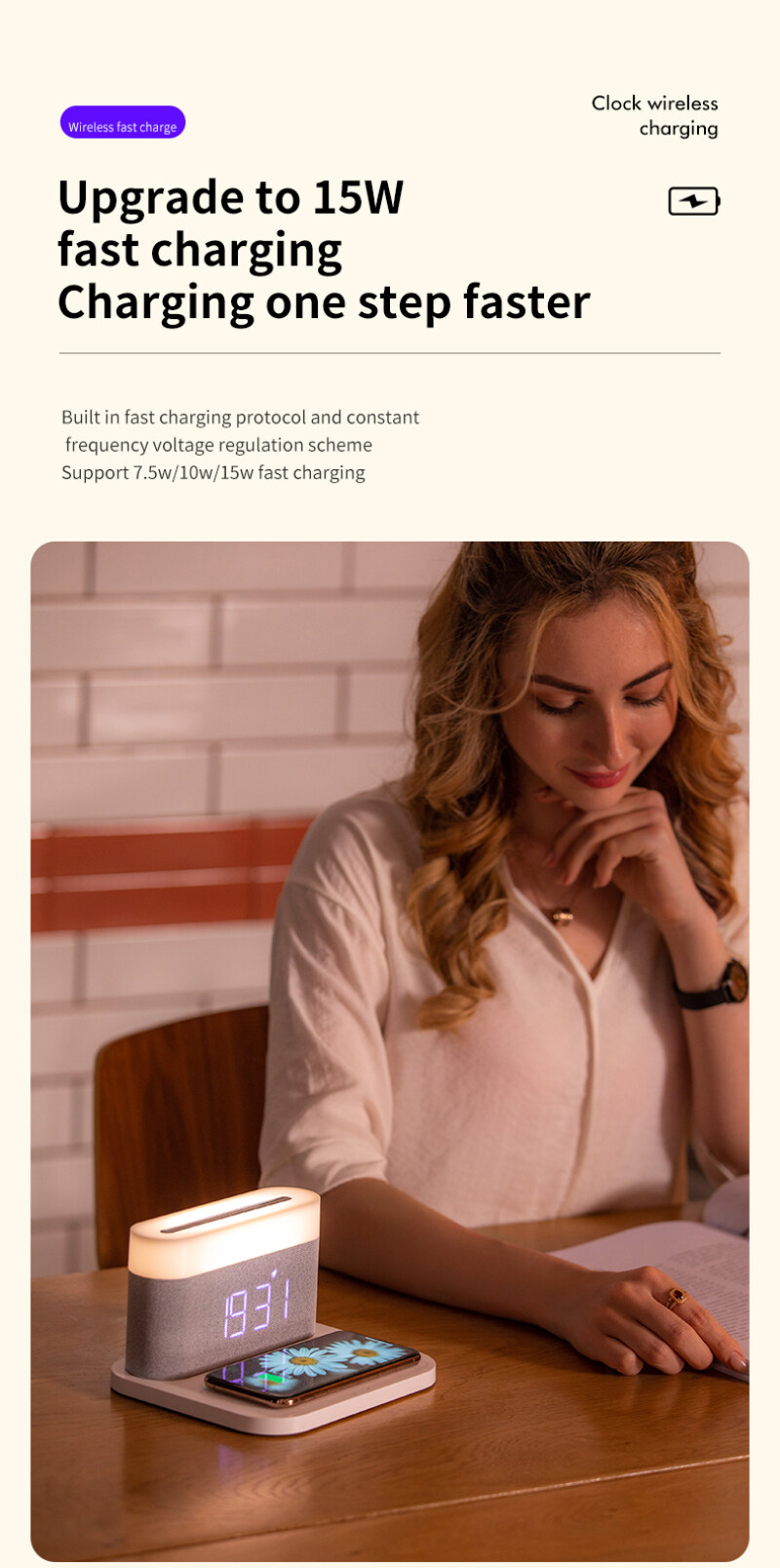 3 In 1 Fast Charging Wireless Charger Table Clock Night Light With Clock Brightness Adjustable Charger Stand