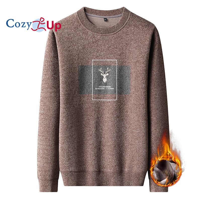 Cozy Up Men Long Sleeve Sweater Slim Round Neck Plus Velvet Warm Casual Knitted Pullover