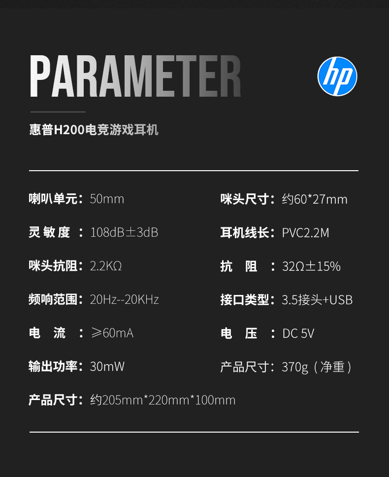 HP H200 Virtual Surround Sound Gaming Headphone Gaming Headset
