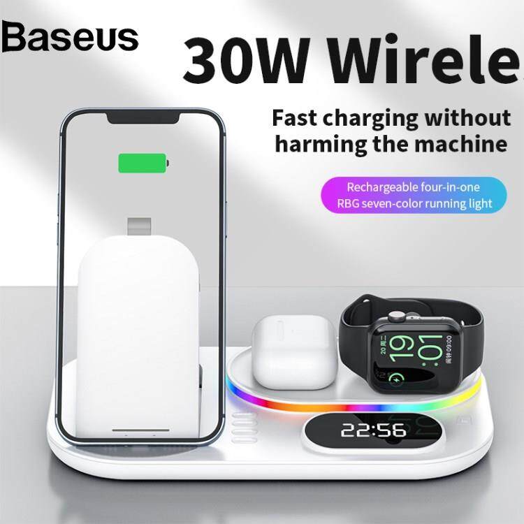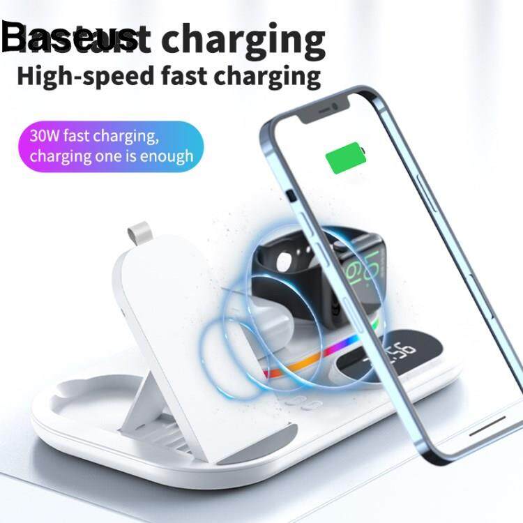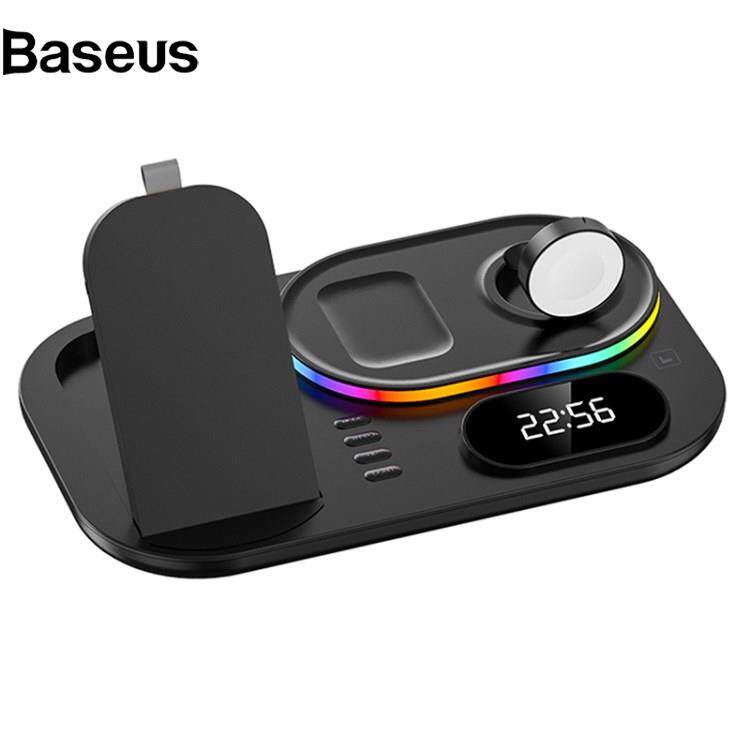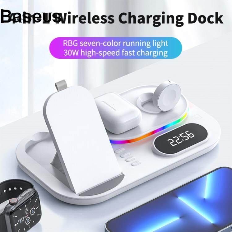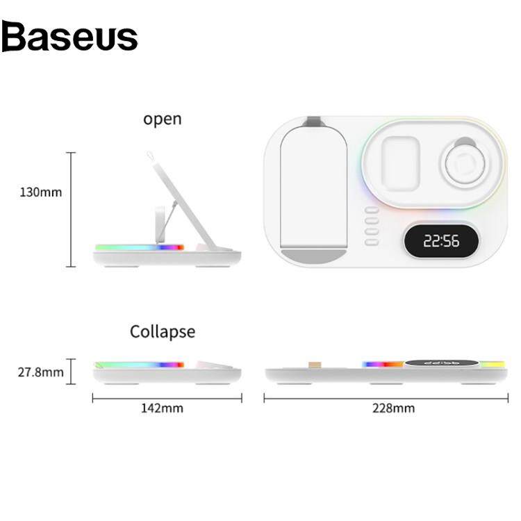 Baseus A06 4 in 1 Mobile Phone Fast Wireless Charger Multi-functional Charging Dock with Clock Display/RGB Light