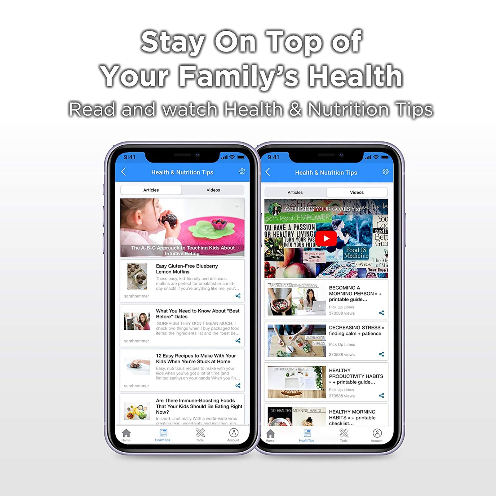 • The Hubble Connected app gives you access to a rich collection of Health & Nutrition tips for keeping your family active and healthy at all times. Browse through videos and articles that give you useful information for maintaining excellent daily health and general wellness.