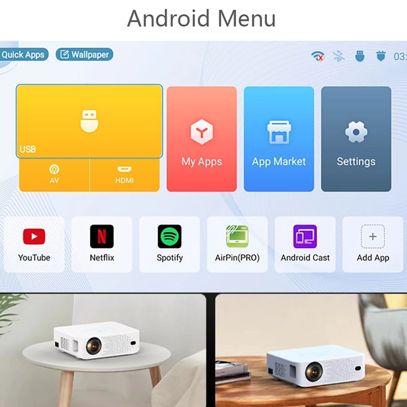 AN10 WiFi 3D 4K Portable Projector 8000 Lumens 1080P HD LED Projector for Mobile Phone Home Theater Wireless Projector Video Movie Party