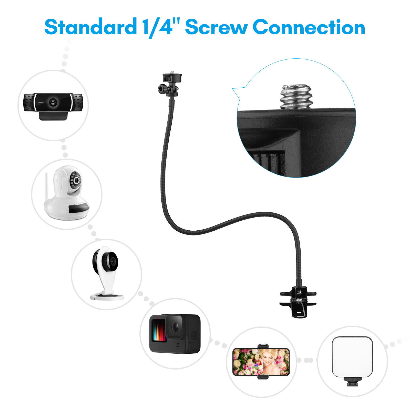 【1/4 Inch Screw Connection】1kg load capacity and with standard 1/4
