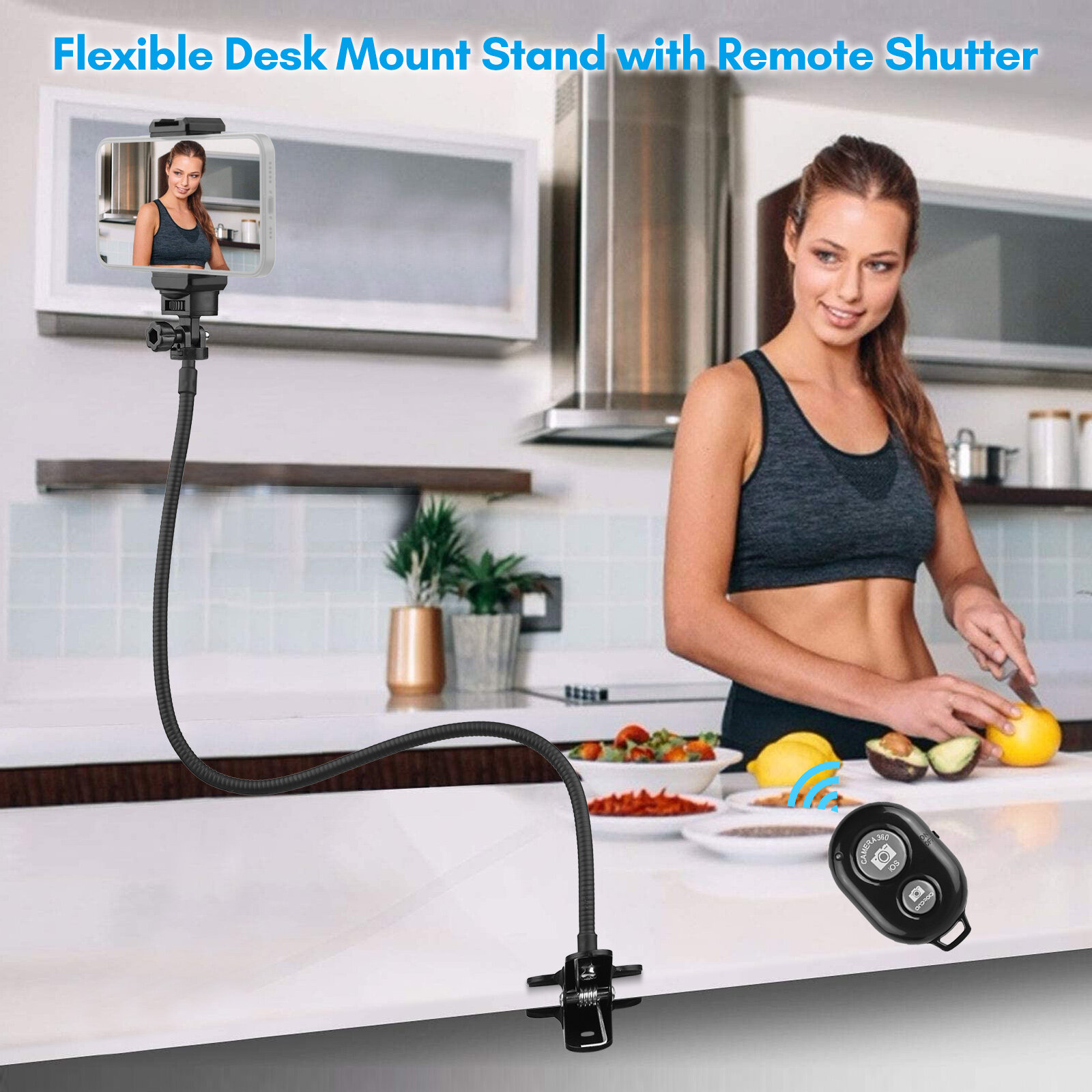 【Desk Mount Phone Stand】The desk mount phone stand with soft tube can be extended to max. 72cm/28in, and net weight is 380g/13.4oz.
