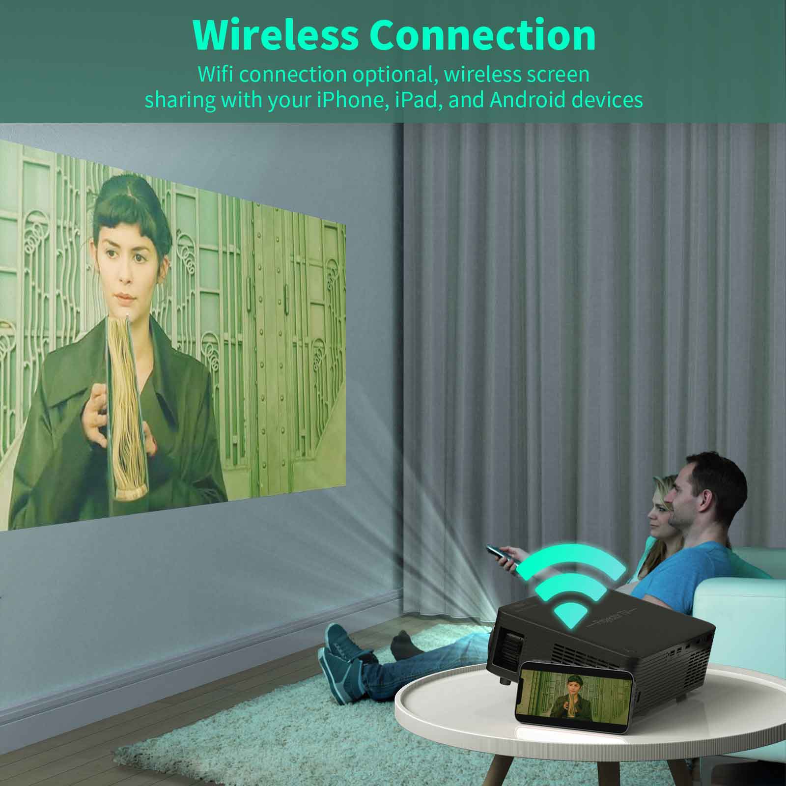 AN10 WiFi 3D 4K Portable Projector 8000 Lumens 1080P HD LED Projector for Mobile Phone Home Theater Wireless Projector Video Movie Party