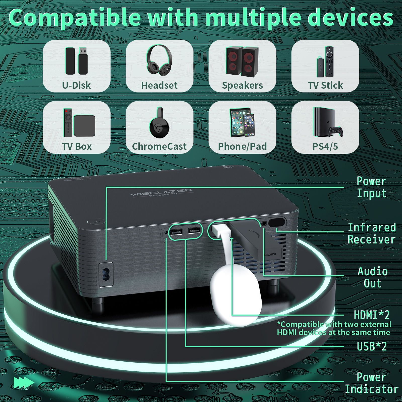STANSIO T300 LED Mini LCD HD Home Projector Wireless Mirroring for Phone Support HDMI USB TF Card Input Personal Cinema Projectors