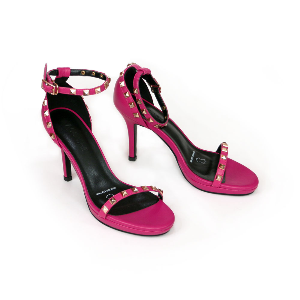 VACCASHE - PINK SPARK - GENUINE LEATHER STRAPPY HEELED SANDALS ANKLE STRAPS WITH STUDS
