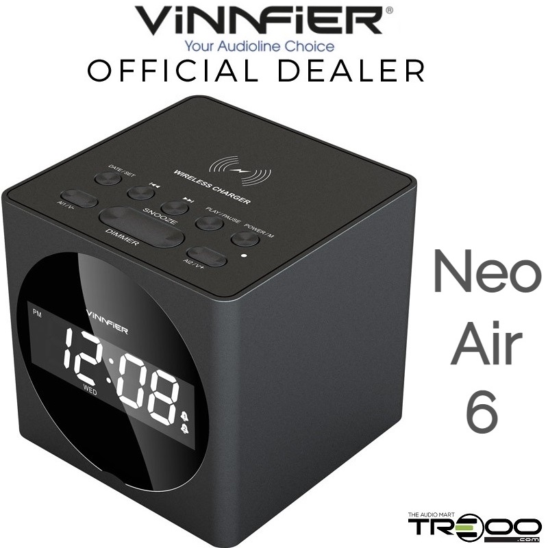 Vinnfier Neo Air 6 Wireless Bluetooth Desktop Bedside Speaker, Wireless Mobile Phone Charger, Alarm Clock with FM Radio