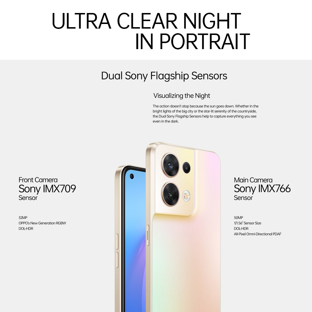 OPPO Reno8 5G / Dual Sony Flagship Sensors / Night Portrait / Mediatek Dimensity 1300 / Ultra Night Video / 80W SUPERVOOC