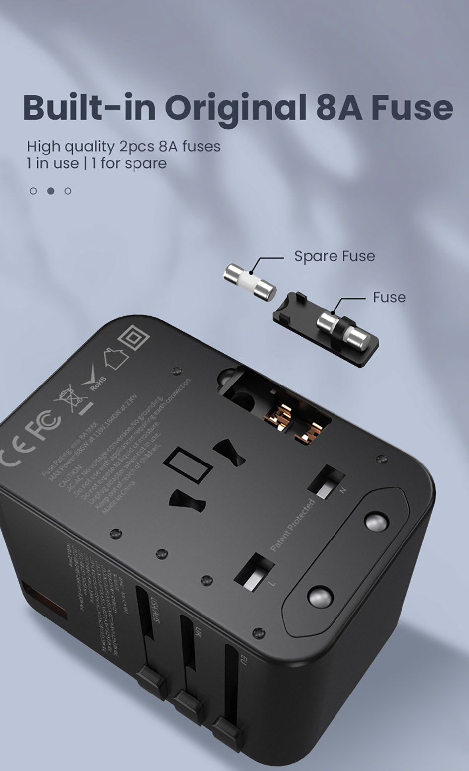 - Built-in Original 2pcs 8A Fuse