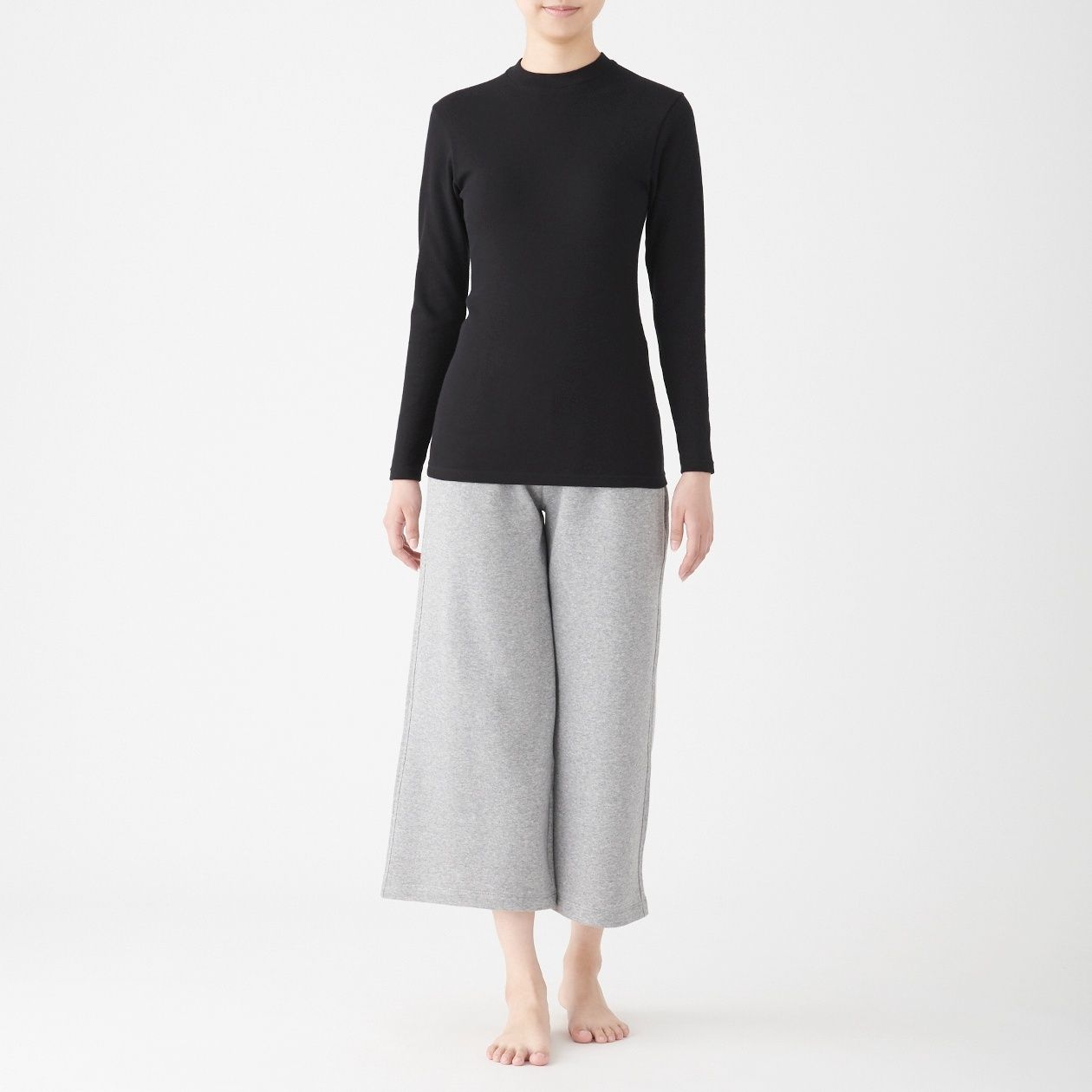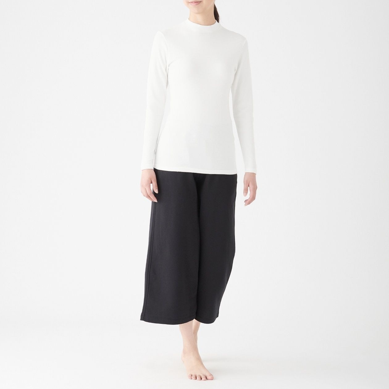 MUJI Ladies Cotton Wool Smooth High Neck Long Sleeve T-Shirts
