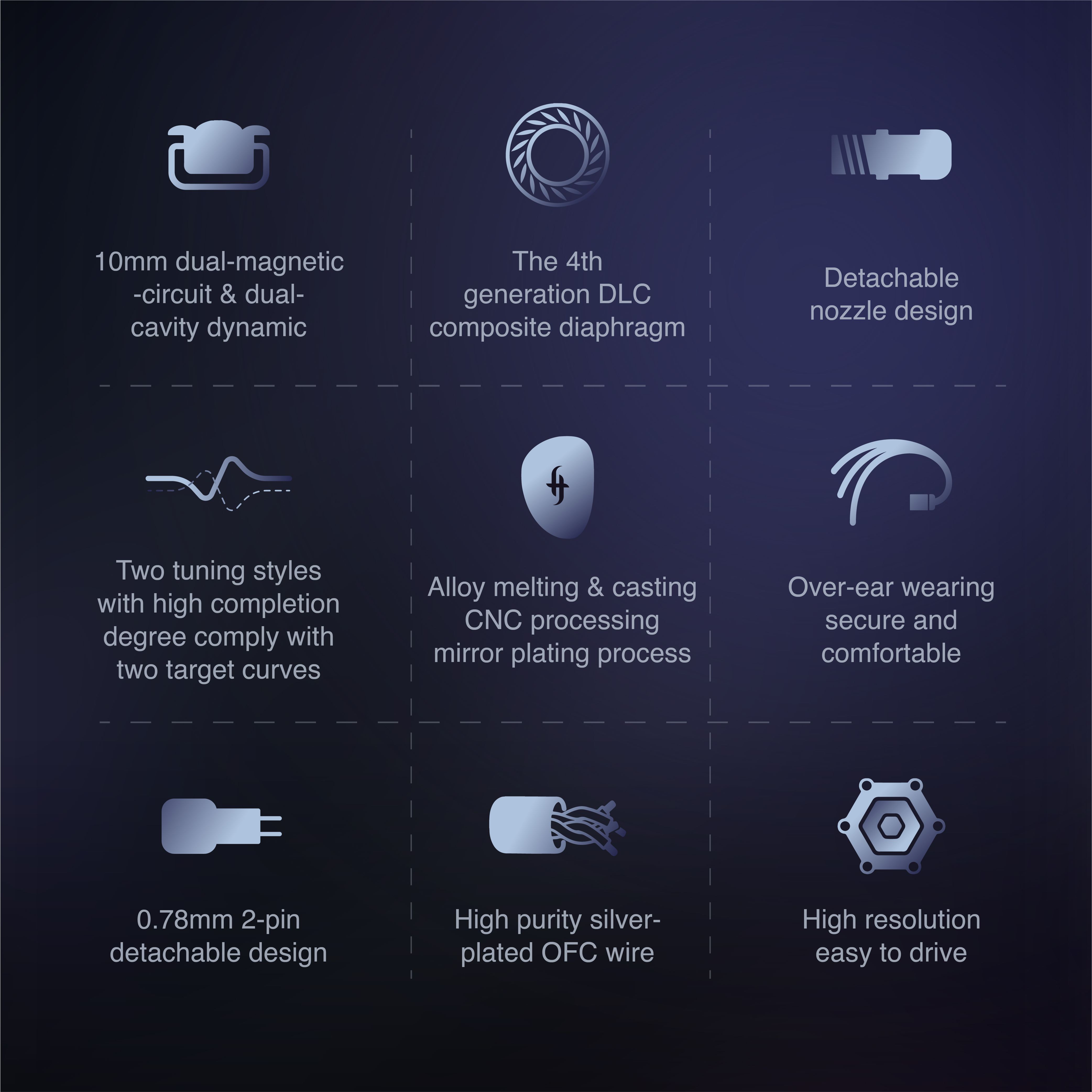 - ♬【All Metal Cavity with Mirror Plating Process】The headphone cavity is processed through high-density alloy metal melting & casting and CNC fine engraving. The body is sturdy and durable. The inner surface is subtle uneven, which can effectively suppress standing wave and provide a clear sound floor. Complemented by mirror plating technology, the earphone body is elegant as an art piece.
