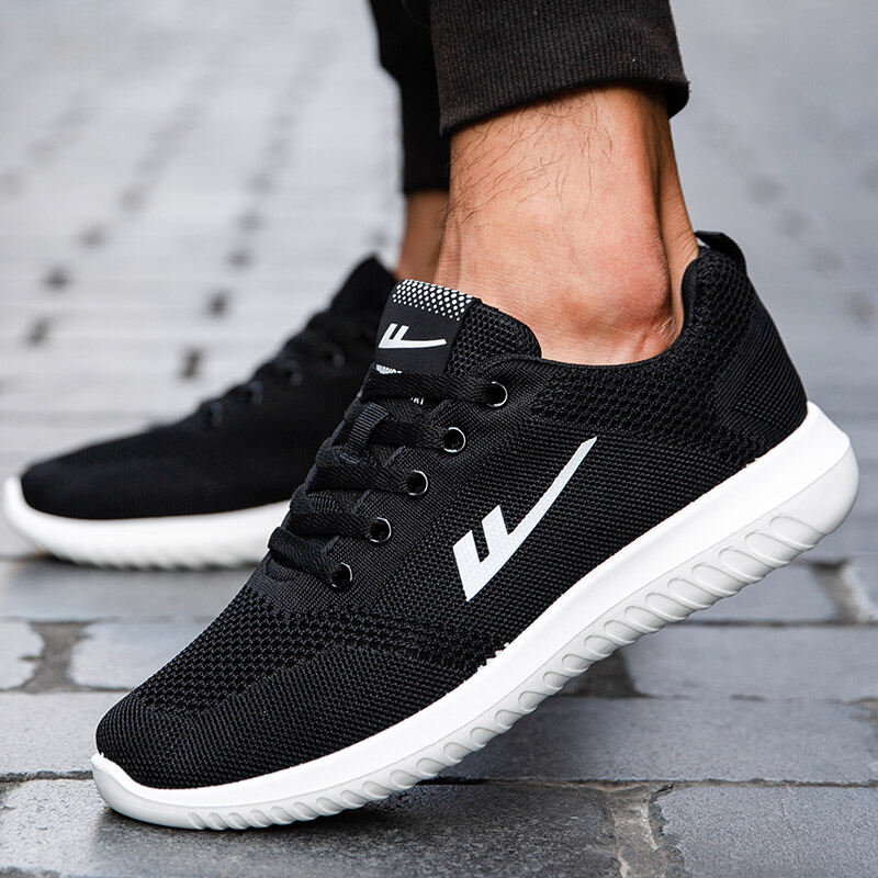 Warrior Men's Sneakers Men's Casual Breathable Non-Slip Sneakers Soft Bottom All Black Spring and Autumn Trendy Shoes Mesh Running Shoes
