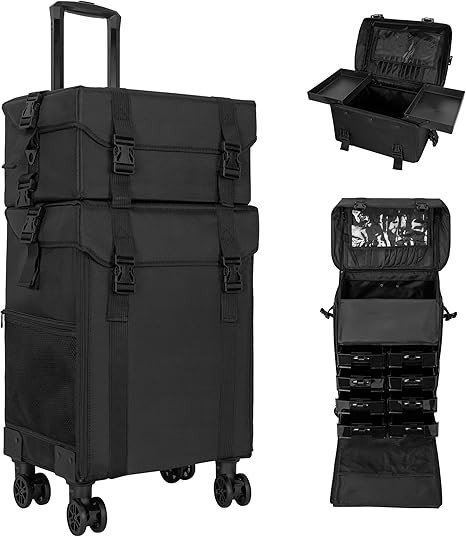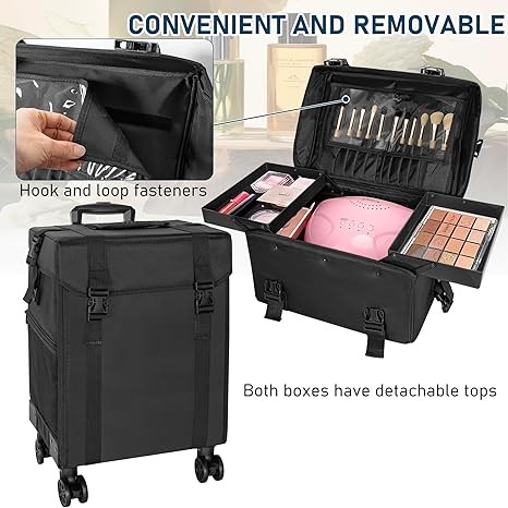 • 【Professional Rolling Makeup Case】The 2-in-1 Makeup Travel Case is designed for professional makeup artists, nail technicians and hair barbers/stylists.