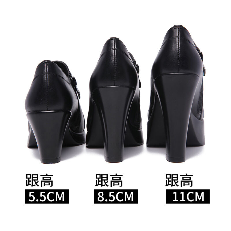 High Heel Single-Layer Shoes for Women 2022 Autumn and Winter New Deep Mouth Pointed Toe Chunky Heel Waterproof Platform Genuine Leather Large Size 40-43 Size Women's Shoes