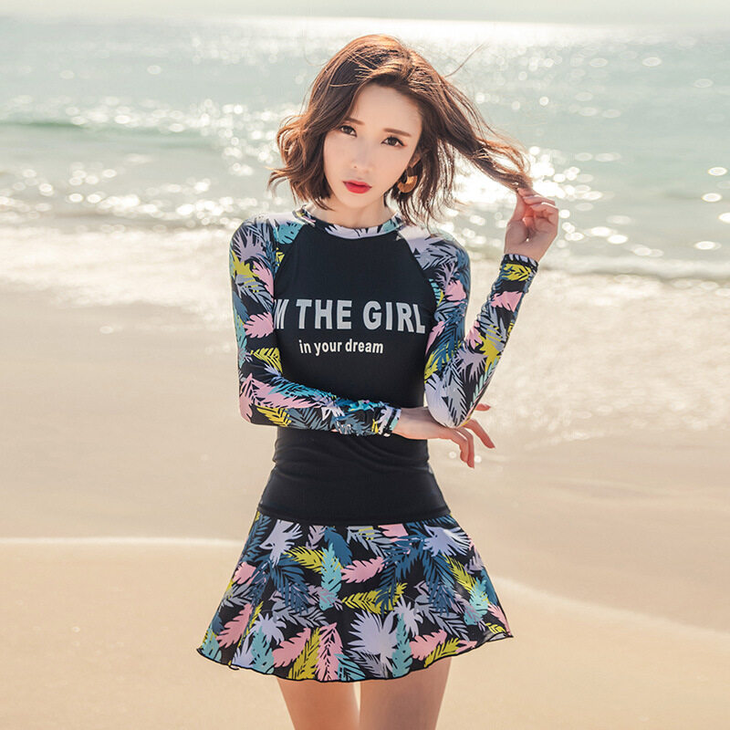 Full Body Women Long Sleeve Rash guards with Black Swimming Pants Diving Suit Swimsuit Printing Swimwear Sunscreen Bathing Suits Yoga Sports Clothing
