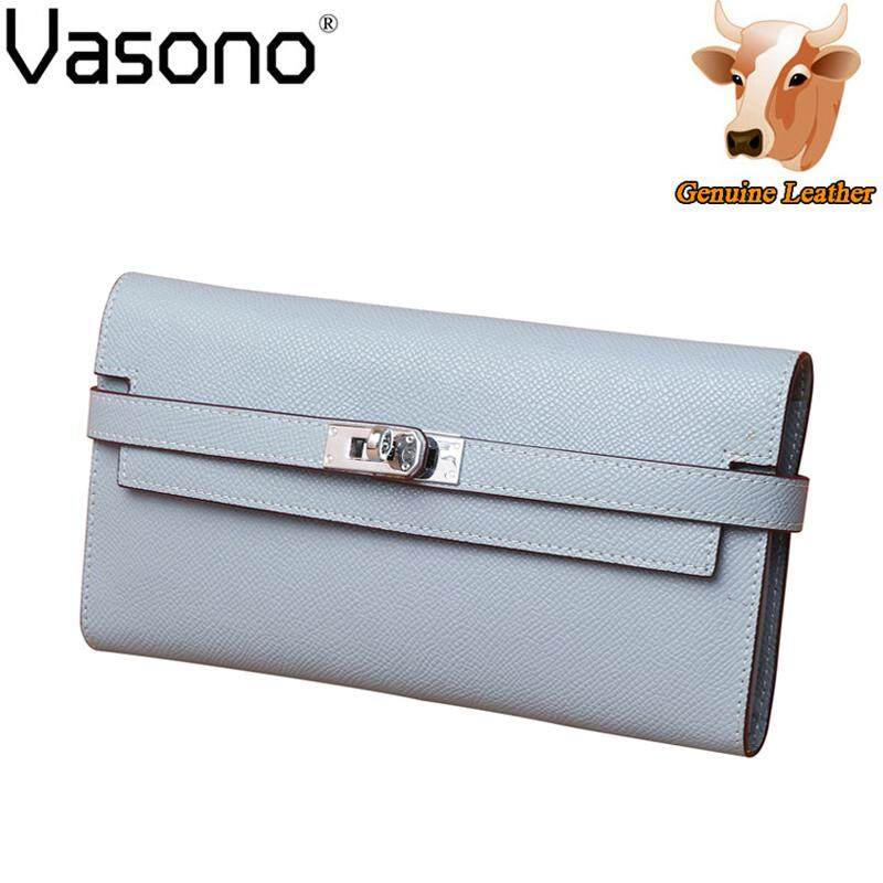 Vasono High Quality Italian Imported Genuine Cow Leather Epsom Birkin Long Clutch Wallet Women Purse Money Clip Holder