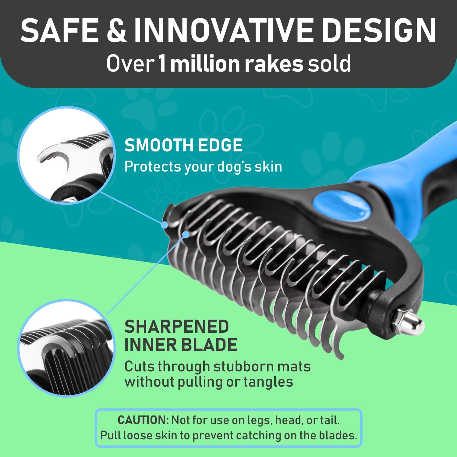 How to Use: Using minimal pressure, glide along fur to remove tangles, and mats. When using on loose skin, be sure to pull loose skin tight to prevent catching on the blade. Its important to let the rake do the work and to use short gentle strokes on your pet.