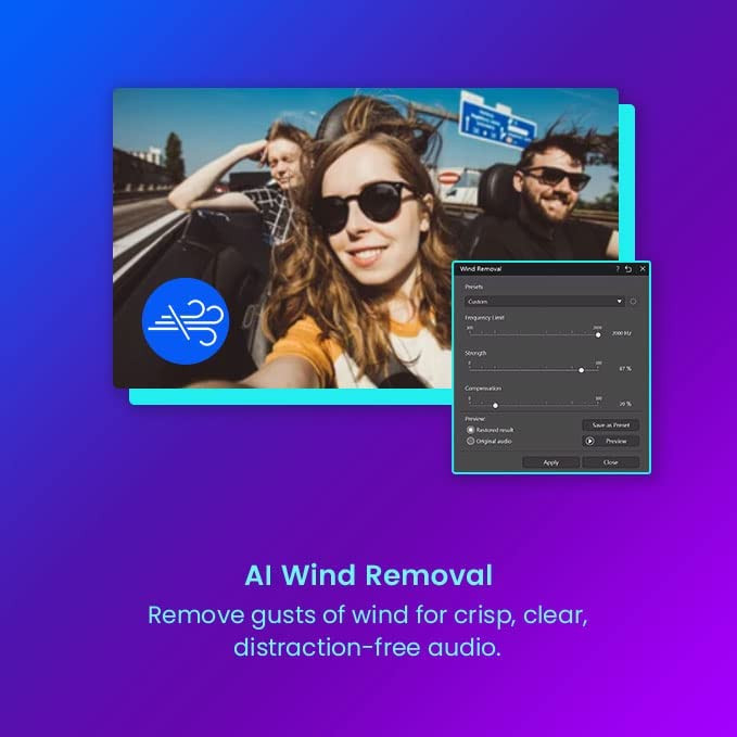 AI Sky Replacement: Enhance or totally replace the sky for perfect scenic shots. Select from a range of presets or import custom images.